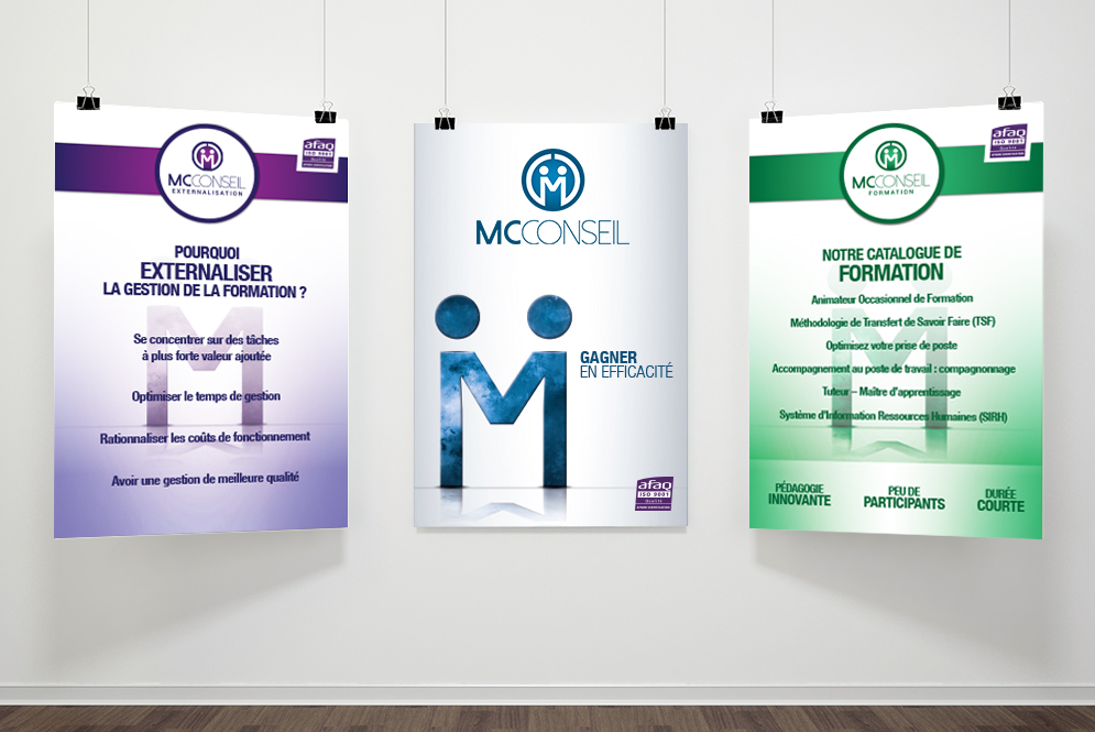 MC Conseil est une entreprise qui a sur faire sa place dans le monde des Ressources Humaines Etant dans une démarche d’amélioration permanente, elle a fait appel à notre studio de création afin de revoir intégralement leur identité visuelle. Pour cela, nous avons repensé et modernisé leur logo, dissocié clairement les pôles d’activités en leur attribuant des codes couleurs, revu tous leurs supports de communication et redéveloppé un nouveau site internet afin d’être en accord avec les codes actuels du design et de l’univers RH.CLIENT